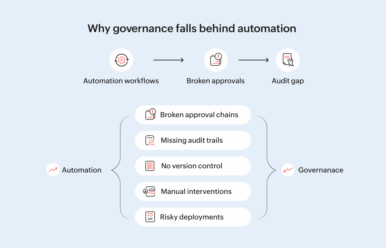One of the most significant governance gaps in IT automation is the lack of control over workflow changes.