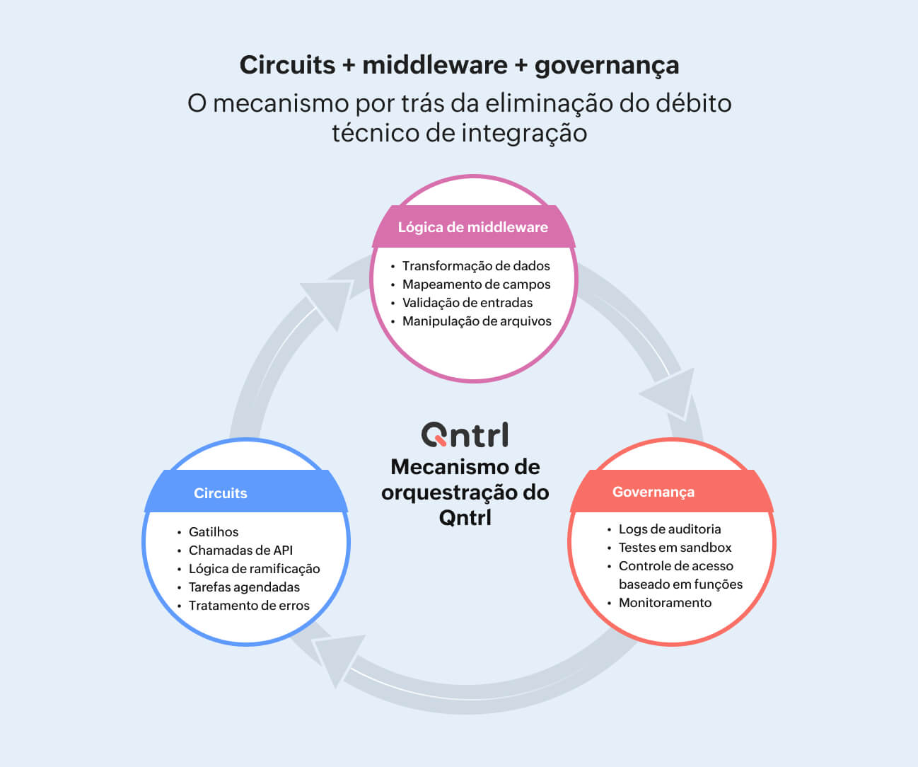 Como middleware, circuitos e governança trabalham juntos no Qntrl
